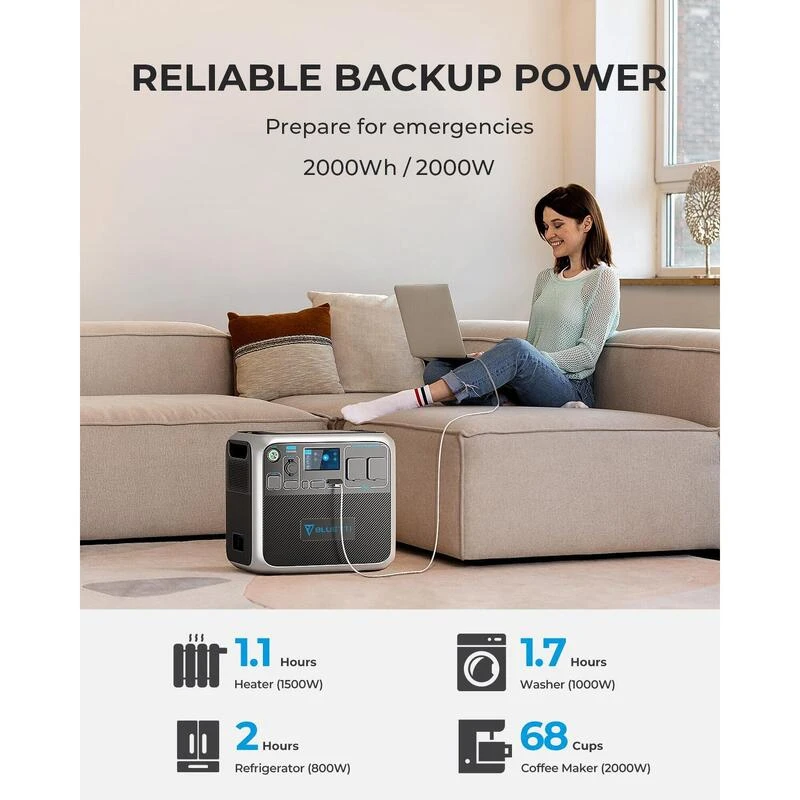Le BLUETTI AC200P est la centrale électrique ultime avec une puissance énorme de 2000W et une capacité de 2000Wh qui peut alimenter votre maison et améliorer votre expérience de camping.